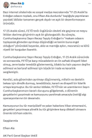 ANKARA, (DHA)- AK Parti Genel Başkan Vekili Efkan Ala, "Cumhurbaşkanımız Sayın Recep Tayyip Erdoğan, 17-25 Aralık sürecinde ve sonrasında, FETÖ'ye karşı mücadelenin en ön saftaki dirayetli lideri olmuş, zerre kadar tereddüt göstermemiş, bilakis bu hain yapının deşifre edilmesi ve bertaraf edilmesi için büyük bir irade ve kararlılık sergilemiştir" dedi.AK Parti Genel Başkan Vekili Efkan Ala, sosyal medya hesabından yaptığı açıklamada, bazı internet sitelerinde ve sosyal medya mecralarında '17-25 Aralık'ta Erdoğan odasını topladı, onu Efkan Ala durdurdu' başlığıyla yazı yayımlandığını belirterek, "Yazıdaki iddialar tamamen gerçek dışıdır ve açık bir dezenformasyon ürünüdür. 17-25 Aralık süreci, FETÖ terör örgütünün devleti ele geçirme ve meşru iktidarı devirme girişiminin açık bir göstergesidir. Bu süreçte, Cumhurbaşkanımız Sayın Recep Tayyip Erdoğan'ın 'makam odasını toplayarak görevden ayrılmayı düşündüğü ve benim buna engel olduğum' yönündeki beyanlar, akla ve mantığa aykırı, mesnetsiz ve kötü niyetli bir kurgudan ibarettir. Cumhurbaşkanımız Sayın Recep Tayyip Erdoğan, 17-25 Aralık sürecinde ve sonrasında, FETÖ'ye karşı mücadelenin en ön saftaki dirayetli lideri olmuş, zerre kadar tereddüt göstermemiş, bilakis bu hain yapının deşifre edilmesi ve bertaraf edilmesi için büyük bir irade ve kararlılık sergilemiştir. Kendisi, asla görevinden ayrılmayı düşünmemiş, milletin ve devletin bekası için dimdik durmuş, tereddütsüz, kararlı ve dirayetli bir liderlik ortaya koymuştur. Bu tür asılsız iddialar, FETÖ'nün ve uzantılarının Sayın Cumhurbaşkanımızın kararlı duruşunu gölgelemek, o dönemin gerçeklerini çarpıtmak ve kamuoyunu yanıltmak amacıyla ürettiği algı operasyonlarının bir devamıdır. Kamuoyunun bu tür manipülatif ve yalan haberlere itibar etmemesini, gerçekleri çarpıtmaya yönelik bu tür girişimlere karşı dikkatli olmasını önemle istirham ederim" ifadelerini kullandı. (DHA)