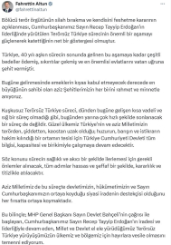 İletişim Başkanı Altun: Silah bırakma kararı, sürecin önemli bir aşamayı katettiğinin göstergesi