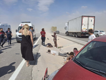 Erkan ALTUNTAŞ/AKSARAY, (DHA)- AKSARAY'da kum fırtınası nedeniyle 8 aracın karıştığı zincirleme kazada, 11 kişi yaralandı. Kaza, saat 16.30 sıralarında Aksaray-Konya kara yolu Sultanhanı ilçesi yakınlarında meydana geldi. Kum fırtınası nedeniyle görüş mesafesinin düşmesi sonucu 8 araç zincirleme kazaya karıştı. Kazada, 3 otomobildeki Ayşegül Keskin (32), Müşerref Agan (62), Veli Agan (60), Hüseyin Agan (28), Ali Güneş Kuzgun (27), Emine Kuzgun (47) ve Mustafa Doruk Kuzgun (12) ile isimleri belirlenemeyen 4 kişi yaralandı. Çevredekilerin ihbarı üzerine kaza yerine çok sayıda jandarma, polis ve sağlık ekipleri sevk edildi. Yaralılardan 4'ü ambulanslarla Sultanhanı Devlet Hastanesi'ne, 7'si de Aksaray Eğitim ve Araştırma Hastanesi’ne kaldırıldı. Kazaya ilişkin incelemeler sürüyor. (DHA)