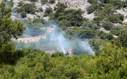 İrem GÜNEYBAZ/ANTALYA, (DHA)- ANTALYA'nın Konyaaltı ilçesindeki sarp kayalık bölgede çıkan orman yangını, havadan ve karadan müdahaleyle kısa sürede kontrol altına aldı.Sarısu Mahallesi'ndeki Tünektepe Teleferik Tesisi karşısındaki ormanda, saat 11.00 sıralarında yangın çıktı. Bölgedeki dumanları görenler, durumu 112 Acil Çağrı Merkezi'ne bildirdi. İhbarla bölgeye çok sayıda itfaiye ve polis ekibi sevk edildi. Sarp arazide çıkan yangına helikopter ve yangın söndürme uçağıyla müdahale edildi. Karadan ise arazözler ve çok sayıda orman işçisiyle söndürme çalışması yürütüldü. Ekiplerin yoğun çalışmasının ardından alevler kontrol altına alınırken, soğutma çalışmalarına başlandı. Yangının çıkış nedeni araştırılırken, bölgenin hemen üzerinde ise elektrik tellerinin bulunduğu görüldü. (DHA)