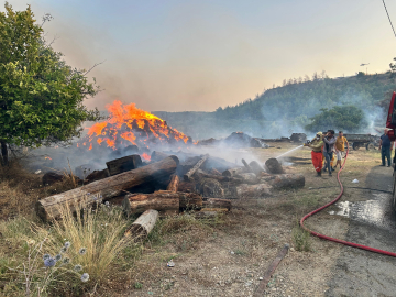 İrem GÜNEYBAZ- Adem AKALAN/ ANTALYA, (DHA)- ANTALYA’nın Aksu ilçesinde çıkan orman yangınına havadan ve karadan müdahale başlatıldı.Akşam saatlerinde Aksu ilçesine bağlı Yurtpınar ve Fettahlı mahallelerinde ormanlık alandan yükselen dumanları fark eden vatandaşların ihbarı üzerine bölgeye çok sayıda ekip sevk edildi. Yangına 3 helikopter, 2 uçak, 11 arazöz, 5 su ikmal aracı, 3 ilk müdahale aracı ve çok sayıda orman işçisiyle müdahale başlatıldı. Ekiplerin alevleri kontrol altına alma çalışmaları sürüyor.