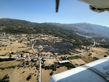 Burhan CEYHAN / AYDIN, (DHA)-AYDIN'da dün zeytinlikte çıkan, havadan ve karadan müdahaleyle 2 saatlik çalışmayla kontrol altına alınan yangında, 20 dönüm arazideki çok sayıda zeytin ağacı zarar gördü.Çine ilçesi kırsal Kabalar Mahallesi yakınlarındaki zeytinlikte, dün saat 16.00 sıralarında, henüz belirlenemeyen nedenle yangın çıktı. İhbarla bölgeye İl Orman İşletme Müdürlüğü ve Aydın Büyükşehir Belediyesi itfaiye ekipleri sevk edildi. Ekiplerin havadan ve karadan müdahalesiyle alevler 2 saatlik çalışmanın ardından evlere sıçramadan kontrol altına aldı. Yangından 20 dönüm arazideki çok sayıda zeytin ağacı zarar gördü. (DHA)