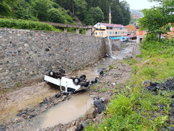 Efnan DEMİREREN/ŞALPAZARI (Trabzon)- TRABZON’un Şalpazarı ilçesinde dereye düşüp, ters dönen kamyonetteki 2 kişi yaralandı.Kaza, sabah saatlerinde ilçenin Sis Dağı Şıhkıranı-Şalpazarı kara yolunun Acısu mevkisinde meydana geldi. M.K. idaresindeki 61 PE 167 plakalı kamyonet, yağmur nedeniyle kayganlaşan yolda kontrolden çıkarak dereye düştü. Derede ters dönen kamyonetin sürücü ile yanındaki K.G. yaralandı. İhbarla bölgeye sevk edilen sağlık ekipleri tarafından ilk müdahalesi yapılıp dereden çıkarılan yaralılar, ambulansla Şalpazarı Devlet Hastanesi'ne kaldırıldı. Yaralıların durumlarının iyi olduğu belirtildi. Kazayla ilgili soruşturma başlatıldı. (DHA)
