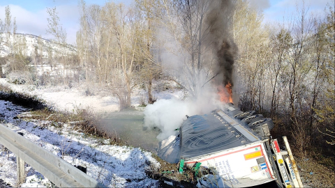 Devrilip alev alan TIR'ın şoförü öldü