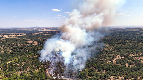 HAVADAN VE KARADAN MÜDAHALE EDİLİYOREdirne'nin Lalapaşa ilçesine bağlı Bulgaristan sınırındaki Ömeroba köyünde çıkan orman yangınını söndürmek için bölgeye takviye ekipler sevk edildi. Alevleri kontrol altına almak için 2 yangın söndürme uçağı ile karadan çok sayıda ekiple müdahale sürüyor. (DHA)