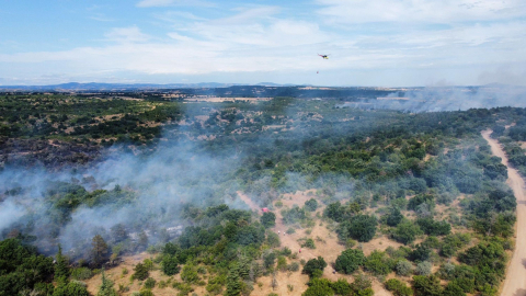 Umut IŞIK/EDİRNE, (DHA)- EDİRNE'nin Lalapaşa ilçesinde çıkan orman yangını çıktı. Bölgeye sevk edilen ekipler yangını söndürmek için havadan ve karadan çalışma başlattı. Lalapaşa ilçesine bağlı Ömeroba köyü yakınlarında henüz bilinmeyen nedenle orman yangını çıktı. Alevler, rüzgarın da etkisiyle hızla yayıldı. İhbar üzerine bölgeye helikopterler ile Lalapaşa ve Edirne Belediyesi ve Orman İşletme Müdürlüğü itfaiye ekipleri sevk edildi. İl Özel İdaresi'nden kepçe ve greyderler de bölgeye gönderildi. Jandarma ekipleri ile köylüler de yangını söndürme çalışmalarına destek verdi. Alevlerin kontrol altına alınması için helikopter, arazöz ve su tankerleriyle çalışmalar sürüyor. (DHA)