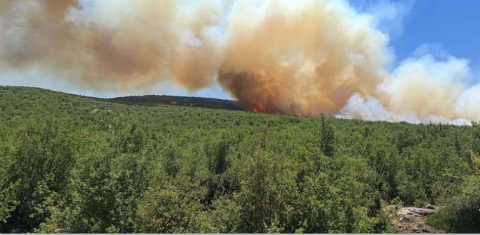 Kadir ÇELİK/GAZİANTEP, (DHA)- GAZİANTEP’in Nurdağı ilçesinde çıkan orman yangınına ekiplerin karadan ve havadan müdahalesi sürüyor.Sakçagözü ile İkizkuyu mahalleleri arasındaki ormanda, öğle saatlerinde yangın çıktı. Ormanda çıkan yangın kısa sürede rüzgarın etkisiyle büyüyüp yayıldı. Dumanları fark edenler, durumu 112 Acil Çağrı Merkezi’ne bildirdi. İhbarla bölgeye çok sayıda itfaiye, orman, AFAD, arazöz, tanker ve iş makinesi yönlendirildi. Ekipler, yangına müdahaleye başlarken, söndürme çalışmalarına havadan yangın söndürme helikopterinin de destek verdiği öğrenildi. Çalışmalar devam ediyor. (DHA)