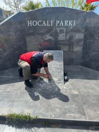 Levent KIZILASLAN/KARASU(Sakarya) (DHA)- SAKARYA'nın Karasu ilçesindeki Hocalı Parkı girişinde bulunan ve . Üzeri harçla kapatılan hitabe, belediye ekipleri tarafından temizlendi. Karasu ilçesi Aziziye Mahallesi Haluk Erülgen Bulvarı'ndaki Hocalı Parkı girişinde bulunan, üzerinde '26 Şubat 1992 yılında Azerbaycan'ın Dağlık Karabağ bölgesindeki Hocalı şehrinde gerçekleştirilen katliamda hayatını kaybeden aziz şehitlerimizin anısına...' yazılı hitabenin üzeri kimliği belirsiz kişi ve kişilerce harçla kapatıldı. İhbar sonrası parka gelen Karasu Belediyesi Zabıta ekipleri, harcı temizleyerek hitabeyi eski haline getirdi. Polis, hitabeye zarar veren kişi veya kişilerin yakalanması için çalışma başlattı. (DHA)