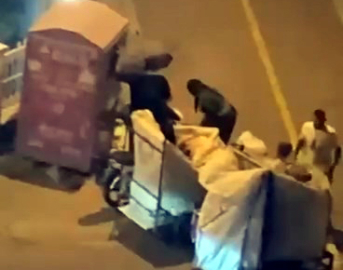 İhsan DÖRTKARDEŞ/İSTANBUL, (DHA)- AVCILAR’da Türkiye Sakatlar Derneği'ne destek için, çeşitli noktalara yerleştirilen giysi kumbarasından hırsızlık anı cep telefonu kamerasına yansıdı. Giysi kumbarasına giren çocuk dakikalar içinde giysileri dışarı çıkardı. Giysileri alan 4 kişi sokaktan hızla uzaklaştı. Dün gece saatlerinde Üniversite mahallesi Meriç sokaktaki giysi kumbarasının yanına gelen 4 kişi yanlarındaki çocuklardan birini giysi kumbarasına soktu. Çocuk kumbara içindeki kıyafetleri dakikalar içinde dışarı çıkardı. Giysileri, kağıt topladıkları el arabalarına yerleştiren 4 kişi çocuğu da kumbaradan dışarı çıkararak sokaktan hızla uzaklaştı. Giysi kumbarasındaki hırsızlık anı mahalle sakinlerinin cep telefonu kamerasına yansıdı. Görüntü Dökümü:-------(Cep telefonu)-Çocuğun kumbaradan uzattığı kıyafetleri alanlardan görüntü-Çocuğun tekstil kumbarasından çıkarılması-Kıyafetleri atık arabalarına koymaları