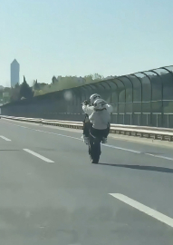 Emin YEŞİL/İSTANBUL, (DHA)- SARIYER, TEM Otoyolu'nda plakasız motosikletle tek teker üzerinde ilerleyen sürücü, trafikte tehlike saçtı. Sürücünün arkasında bir kişinin daha bulunduğu anlar cep telefonu kamerasıyla kaydedildi. Olay, dün saat 17.00 sıralarında TEM Otoyolu Sarıyer mevkisinde meydana geldi. Plakası olmayan motosikletin sürücüsü, yoğun trafikte tek teker üzerinde uzun süre ilerledi. Motosikletin arkasında bir kişinin daha olduğu görüldü.TEHLİKELİ ANLAR KAMERADAKendi canını ve trafikteki diğer sürücülerin hayatını tehlikeye atan sürücünün o anları, başka bir sürücü tarafından cep telefonu kamerasıyla kaydedildi. Görüntülerde, motosikletin tek teker üzerinde hızla ilerlediği anlar yer alıyor. (DHA)