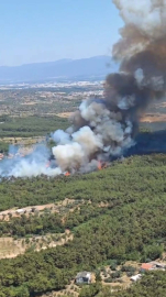 Kadir ÖZEN/İZMİR, (DHA)- İZMİR'in Bornova ilçesinde, tarım arazisinde çıkan yangın, ormana sıçradı. Bölgeye sevk edilen ekipler, alevlere, havadan ve karadan müdahale ediyor. Bornova ilçesinin Yakaköy Mahallesi'nde saat 14.30 sıralarında tarım arazisinde yangın çıktı. Alevler kısa sürede yayılarak ormana sıçradı. Çevredekiler ihbarı üzerine bölgeye İzmir Orman Bölge Müdürlüğü'ne ait 2 uçak, 9 helikopter, 17 arazöz, 5 su ikmal, 3 dozer sevk edildi. Ekipler alevlere havadan ve karadan müdahale ediyor. (DHA)