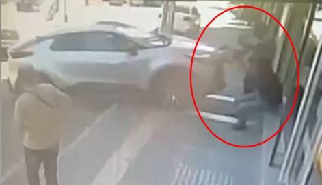 Kaldırıma çıkan cip, bankanın güvenlik görevlisine çaptı; kaza kamerada