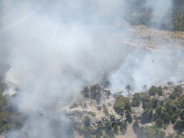 Atike CEYLAN KAÇAR/BOZYAZI (Mersin), (DHA)- MERSİN'in Bozyazı ilçesinde orman yangını çıktı. Ekiplerin alevlere müdahalesi sürüyor. Lenger Mahallesi'ndeki ormanda, saat 15.30 sıralarında yangın çıktı. Yükselen dumanı görenlerin ihbarı üzerine bölgeye Orman İşletme Müdürlüğü'ne bağlı 4 helikopter, çok sayıda arazöz ve orman işçisi sevk edildi. Rüzgarın etkili olduğu bölgede yangının büyümemesi için ekipler çalışma başlattı. (DHA)
