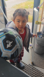 Otobüs şoförü, yolda gördüğü çocuğun topunu şişirdi; küçük kızın sevinci kamerada