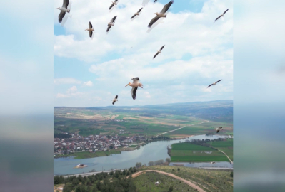 Yavuz YILMAZ/İNEGÖL (Bursa), (DHA)- BURSA’nın İnegöl ilçesindeki Boğazköy Barajı, bahar aylarının gelmesiyle birlikte pelikanlara ev sahipliği yapmaya başladı. Göç yolunda mola veren pelikanlar dronla görüntülendi. İnegöl ilçesinden başlayarak, Türkiye'nin sebze ihtiyacının büyük bölümünü karşılayan Yenişehir Ovası'nı da sulayan Boğazköy Barajı, pek çok kuş türünü de misafir olarak ağırlıyor. Daha önce ördek, leylek ve martı gibi türlere ev sahipliği yapan barajın yeni misafirleri ise pelikanlar oldu. Boğazköy Barajı, yaz aylarının müjdecisi olarak kabul edilen pelikanların, uğrak noktası haline geldi. Her yıl olduğu gibi bu yıl da barajda mola veren pelikan sürüsü, doğaseverler ve fotoğraf tutkunları için güzel görüntüler oluşturdu.Pelikanların göç yolculuğu ile barajda mola verdiği anlar, dronla havadan görüntülendi. Görüntülere baraj çevresinde konaklayan leylekler de yansıdı. (DHA)