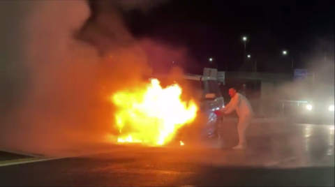 MAÇKA (Trabzon), (DHA)- TRABZON’un Maçka ilçesinde seyir halindeyken alev alan cipteki yangın, itfaiyenin müdahalesi ile söndürüldü. O anlar çevredekiler tarafından cep telefonuyla görüntülendi.Olay, dün gece saatlerinde Maçka ilçesi Gürgenağaç Mahallesi'nde meydana geldi. Sürücüsünün ismi öğrenilemeyen cip seyir halindeyken kaputtan dumanlar yükselmeye başladı. Dumanı fark eden sürücü aracını yol kenarına çekerek yangın tüpüyle müdahale etmeye çalıştı. İhbar üzerine olay yerine itfaiye ekipleri sevk edildi. Yangın kısa sürede büyüyerek tüm aracı sardı. Alevler itfaiye ekiplerinin müdahalesiyle söndürüldü. Yangında cip kullanılmaz hale geldi. O anlar çevredekiler tarafından cep telefonuyla kayda alındı. Yangının çıkış nedeninin belirlenmesi için inceleme başlatıldı. (DHA)