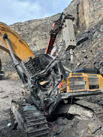 Üzerine kaya parçası düşen kepçenin operatörü yaralandı